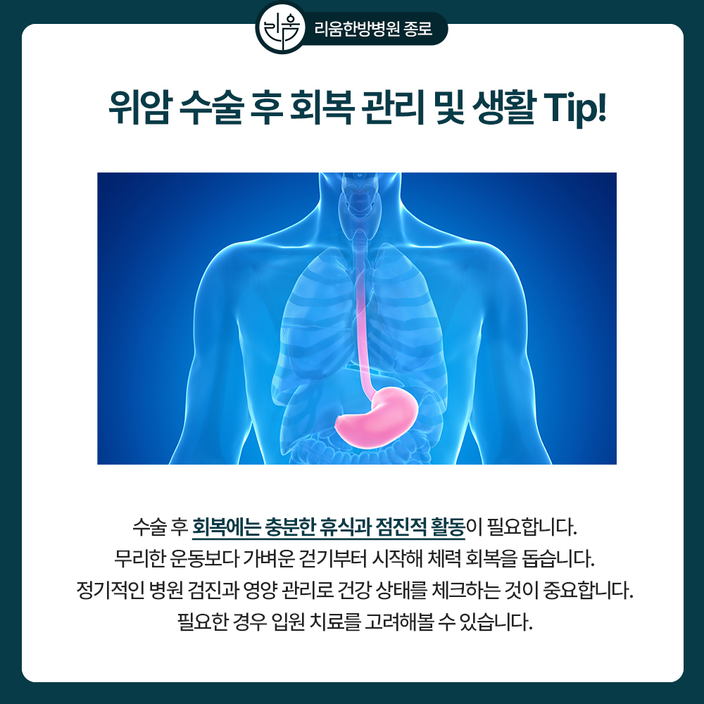 식사 후 어지럼증, 두근거림 같은 증상(덤핑증후군)도 있을 수 있습니다.