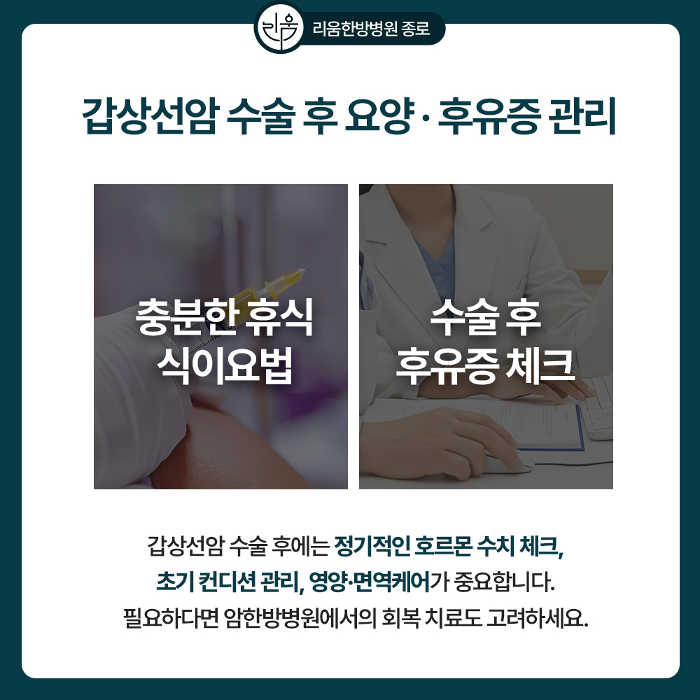 갑상선암 수술은 비교적 예후가 좋은 편이지만, 수술 후에는 호르몬 변화와 조직 손상으로 인해 여러 후유증이 발생할 수 있습니다.